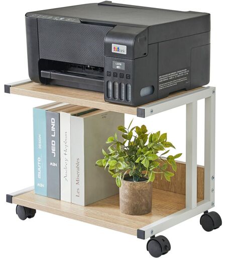 Ebern Designs Naticia Under Desk Printer Stand, 2-Tier Cart for Printer & Fax, Mobile Home Desktop Organizer Shelf with 4 Wheels Beige 34.5cm H X 43cm W X 29cm D