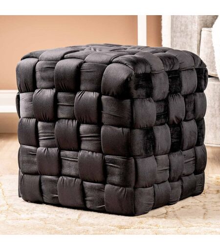 Canora Grey Barbaralee Velvet Woven Ottoman Dressing Stool for Bedroom Furniture, Modern Accent Stool with MDF Base Black 43.5cm H X 42.5cm W X 42.5cm D
