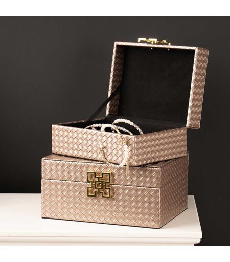 Canora Grey Elegant Faux Leather Jewellery Boxes, Decorative Storage Case Gold/Brown 12.5cm H X 26cm W X 21cm D