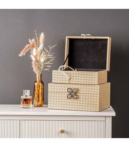 Discover the perfect blend of style and functionality with our Elegant Faux Leather Jewelry Boxes. This set of 2 decorative cases is designed to add a touch of sophistication to your jewelry organization routine. Canora Grey Finish: Gold/Silver ...