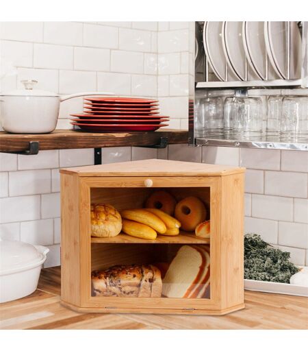Belfry Kitchen Corner Bread Bin Bamboo Two-Layer Bread Box For Kitchen Corner Fit Brown