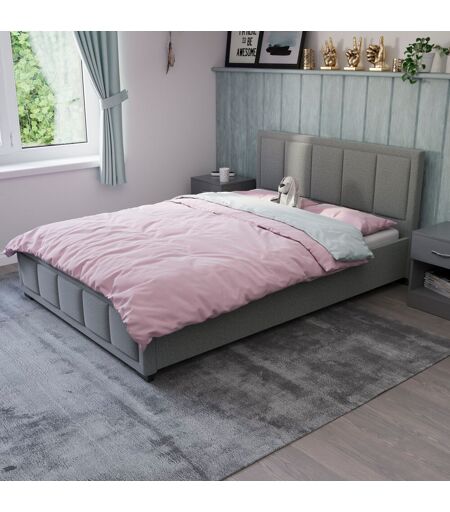 Latitude Run Annaira Fabric Bed Frame Bedroom Furniture, UKFR Certified Light Grey Double (4'6)