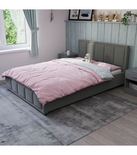 Latitude Run Annaira Fabric Bed Frame Bedroom Furniture, UKFR Certified Dark Grey Double (4'6)