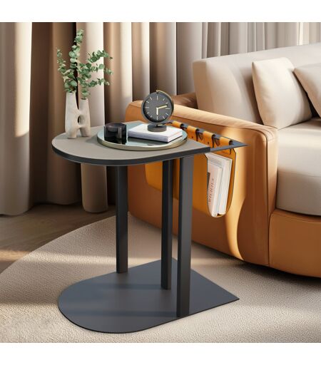 Ivy Bronx C Shaped Sofa Side End Table Saddle Leather Top Coffee Laptop Table With Magazine Rack For Living Room Bedroom Grey 56.5cm H X 55cm W X 40cm D