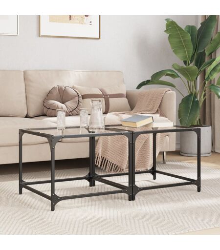 Borough Wharf Coffee Tables With Transparent Glass Top 2 Pcs 30X30x40 Cm Steel Transparent 40cm H x 50cm L x 50cm W