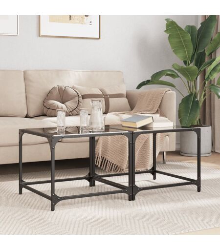 Borough Wharf Coffee Tables With Transparent Glass Top 2 Pcs 30X30x40 Cm Steel Black 40cm H x 50cm L x 50cm W
