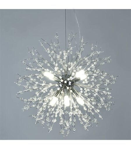 Fairmont Park Ceiling Lights, Modern K9 Crystals Chandelier Lighting Fixture, 8-Light Dandelion Flush Mount Ceiling Pendant Light Fitting For Bedroom Kitchen Dining Silver 45cm H X 45cm W X 45cm D