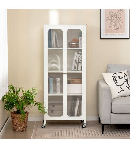 Latitude Run Storage Cabinet Mobile 2 Doors Food Pantry Cupboard Cabinet W/ Adjustable Shelves White 147cm H X 60cm W X 36cm D