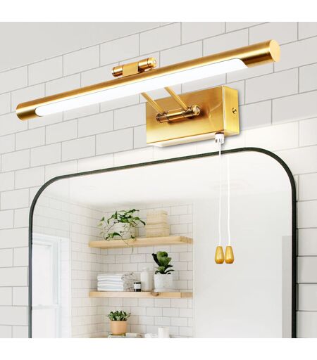 Fairmont Park Picture Light 8W,Brass Bathroom Vanity Mirror LED Wall Sconce Lighting Straight Arm Swing With Swivel Lamp Head Pull Switch Bedroom Lights Restaurant Chrome 6cm H X 40cm W X 19cm D