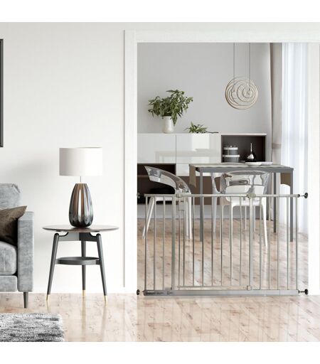 Latitude Run Extra Wide Hallway Dog Gate, Pressure Fit Pet Gate, Puppy Safety Barrier for Hallways and Wide Spaces, Easy Installation Grey 134-140 cm