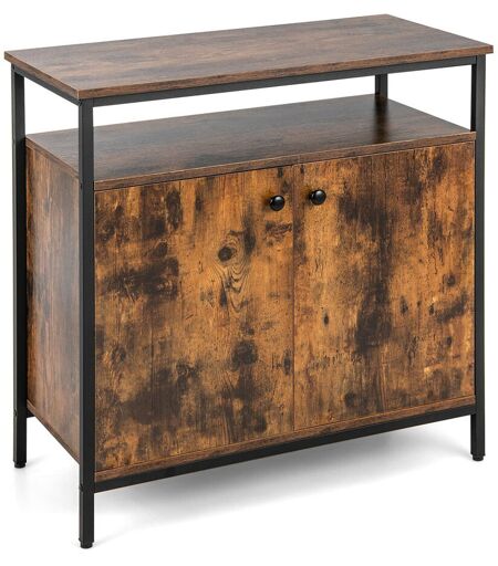 Borough Wharf Industrial Storage Cabinet Wooden Buffet Sideboard W/ 2 Doors & Open Shelf Brown 80cm W X 40cm D