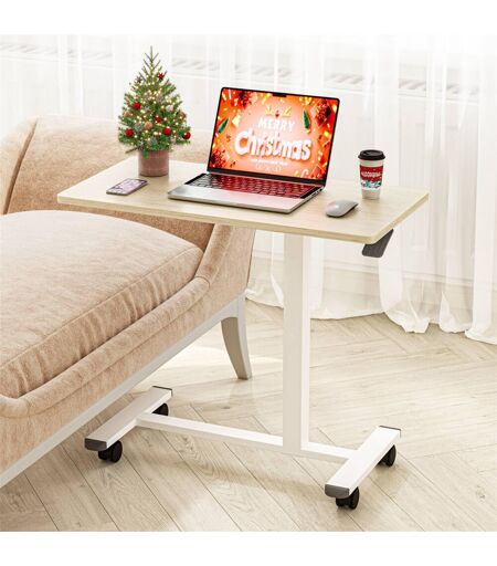17 Stories Height-Adjustable Side Tables, Pneumatic Sit-Stand Desks On Wheels, C-Shaped Mobile Laptop Tables Beige