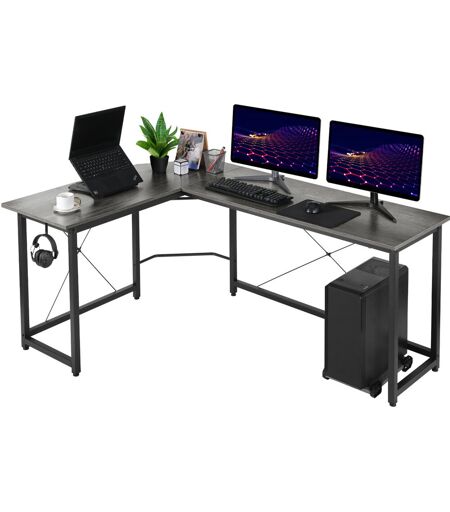 L-Shaped Desk, 66 inch Sturdy Computer PC Laptop Table, Home Office Desk, Corner Deskwith Iron Hooks, Gaming Table, Workstation, Larger Gaming Desk (Grey) Inbox Zero ...