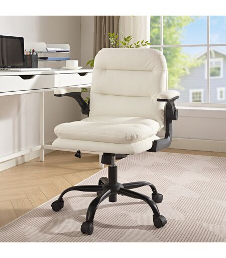Inbox Zero Lambright Executive Chair, Ergonomic Swivel Office Desk Chair with Flip-up Armrest and Adjustable Height, PU Leather Thickened Cushion, for Computer T White 45cm W X 46cm D