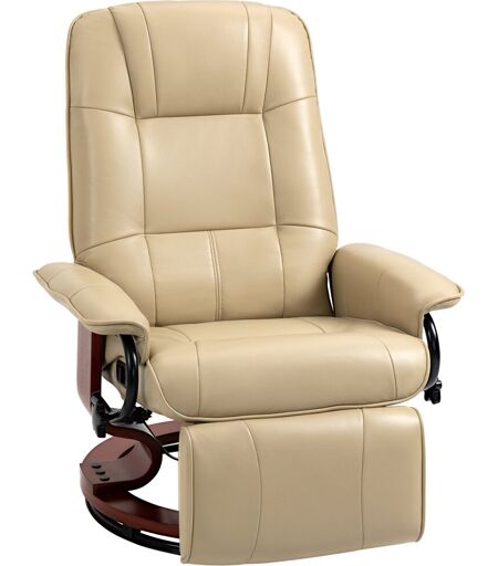 Latitude Run Manual Recliner Chair Armchair Sofa with Faux Leather Upholstered Wooden Base Cream 100cm H X 78cm W X 87cm D