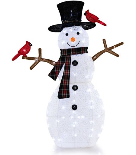 The Seasonal Aisle 4.2 FT Lighted Snowman & Redbirds Christmas Decoration LED Lights White 127cm H X 99cm W X 16cm D
