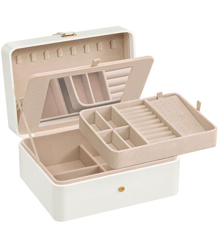 This spacious 17.6 x 22 x 11 cm jewelry box has multiple compartments, hooks on the lid for long necklaces, bottom layer for sunglasses, and a removable earring tray Brayden Studio Finish: White ...