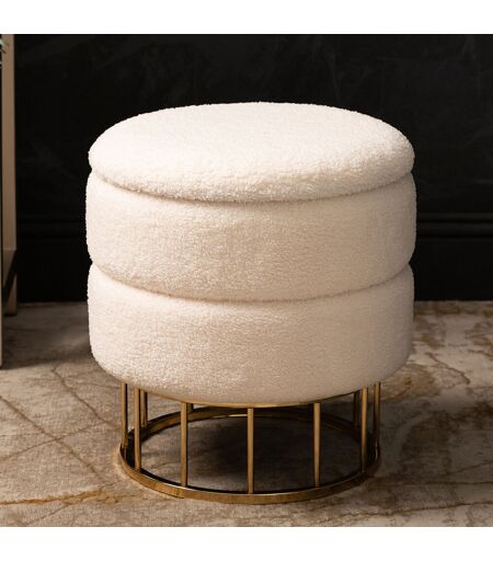 Introducing the Velvet Boucle Ottoman Storage Stool, a luxurious addition to elevate your bedroom furniture. This modern round storage accent stool seamlessly blends style with practicality, offering a touch of sophistication to your bedroom decor. Fairmont Park Base Colour: Gold, Seat Colour: White ...