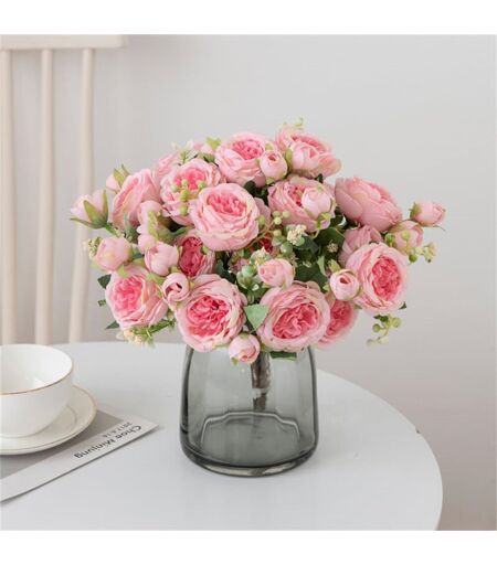 The Seasonal Aisle Artificial Flowers, Peony Silk Flowers Wedding Bouquet Table Decoration, 20 Heads Fake Flowers Home Decoration Christmas, 4 Pack Pink