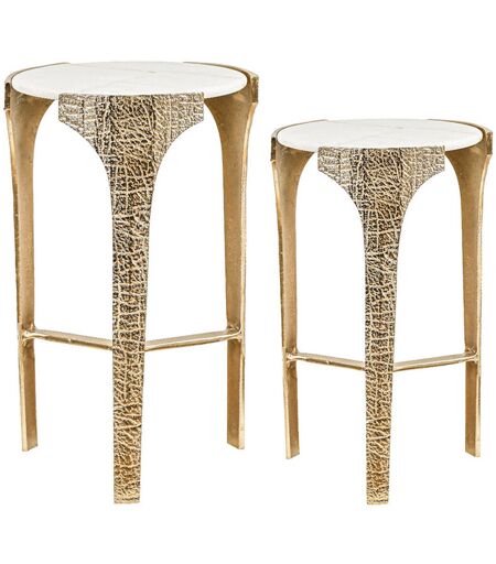 Add a touch of luxury and functionality to your space with the marble top round nesting end table set with gold metal frame. Perfect for modern living room furniture, this elegant set features a durable marble top that exudes sophistication and a sleek gold metal frame for a stylish finish. The nesting design maximizes functionality, allowing you to save space or use the tables separately as needed. These versatile accent tables are ideal for displaying decor, holding beverages, or organizing essentials, making them a perfect addition to contemporary and glam interiors. Designed to elevate your home decor, this set combines style, durability, and practicality for your living room or bedroom. Canora Grey ...