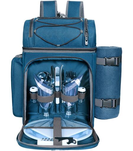 Fleur De Lis Living Picnic Basket Backpack For 2 Person With 2 Insulated Cooler Compartment, Wine Holder, Fleece Blanket, Cutlery Set,Perfect For Beach, Hiking, Camping, Blue