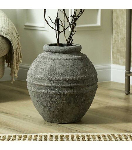 Lark Manor Cerny 40.5cm Antique Dark Grey Terracotta Flower Pot, Decoration Stone Finish Floor Vase for Home Decor Antique Dark Grey 40.5cm H X 40cm W X 40cm D