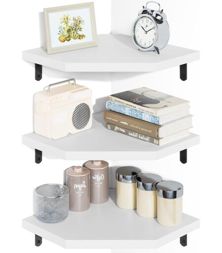 Placement of Corner Shelf Wall Mounted - In the kitchen, you can also store spices, cooking oils, and other small items. You can display family photos, art, or your favourite book collection in the living room and in the bedroom.In the bathroom, corner shelves can be used to store toiletries, towels, and other bathroom items.In the office, corner shelves can be used to store files, books. Borough Wharf Finish: White ...