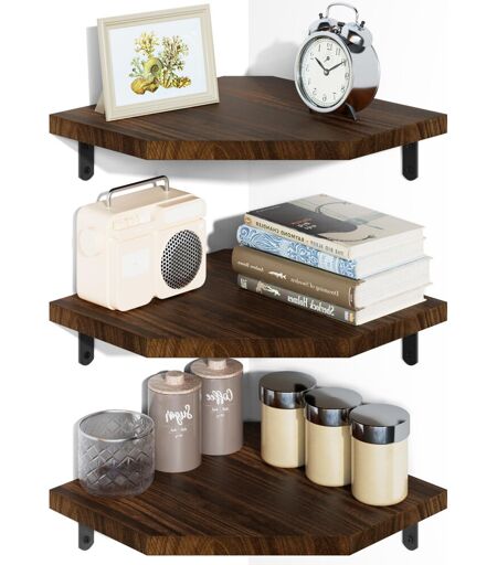 Placement of Corner Shelf Wall Mounted - In the kitchen, you can also store spices, cooking oils, and other small items. You can display family photos, art, or your favourite book collection in the living room and in the bedroom.In the bathroom, corner shelves can be used to store toiletries, towels, and other bathroom items.In the office, corner shelves can be used to store files, books. Borough Wharf Finish: Brown ...
