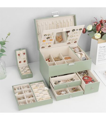 3-layer jewelry box meets all jewelry display needs. There are 10 necklace hooks on the back of the earring plate. The PU jewelry box has a removable jewelry tray, two watch pillows and three small drawers. Brayden Studio ...