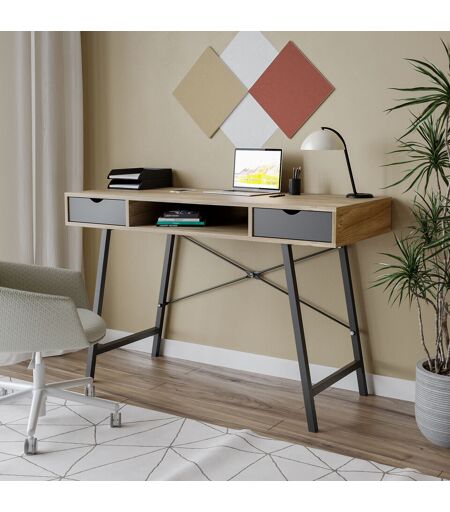 George Oliver Mid-Century Wood Writing Desk Computer Laptop Bureau with 2 Drawers Home Office Black