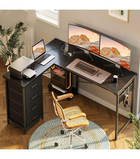 Rio Desk with drawers, L-shaped desk with sockets and USB charging port, reversible desk with storage space for the home office Black