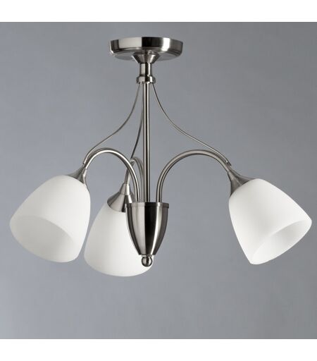 Metro 3 - Light Stylish Semi Flush Silver Glass shaded Chandelier Silver 32cm H X 48cm W X 48cm D