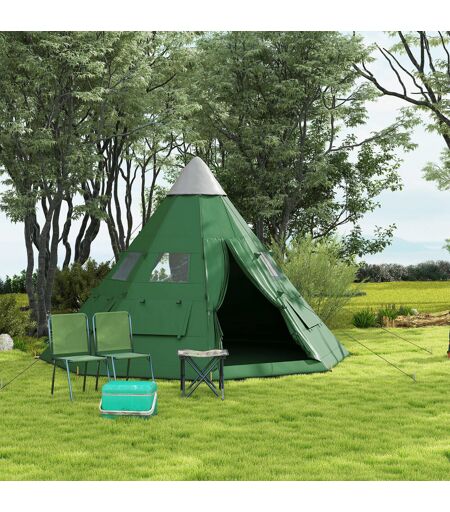 Turn your camping trips into a fun experience like never before – opt for this six-man tipi tent from Outsunny. Roomy and spacious inside so everyone can sleep and relax with plenty of room, pre-attached metal poles ensure set-up is easy, whilst ensuring a tough structure which keeps upright and in place all day long. Mesh windows are placed all over to allow air to circulate inside, with a large zipped door for easy access in and out. Compact when folded for easy carrying with the included bag. Ground stakes and guy ropes also included.- Pe-attached rust-resistant metal poles, for a solid structure which keeps upright and in place all day long; - Large tipi design, comfortably fits up to six adults with plenty of room to sleep and relax; - Polyester walls to protect against mild weather outdoors, keeping you dry and protected inside; - Mesh windows all over to keep you cool inside, with a large zipped door for easy access in and out; - Easy to fold design, with bag included for carrying; - 16 ground stakes and 8 guy ropes included to keep attached to the ground; - Easy to assemble;- Colour: Green, Black; - Materials: Polyester, Metal, PE Cloth, Plastic; - Overall Dimension: 365L x 365W x 260H cm; - Door Dimension: 145L x 165W cm; - Item Label: A20-136V00GN; Brayden Studio Colour: Green ...