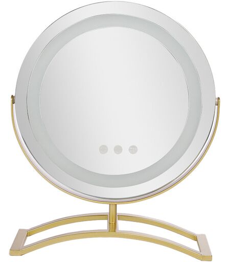 Fairmont Park Desktop Gold Round LED Tricolor Makeup Mirror with Lights Gold 30cm H X 25cm W X 10cm D