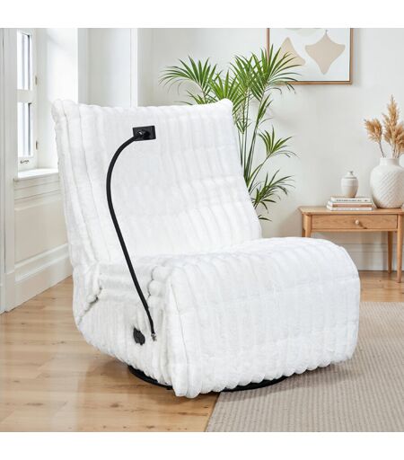Designed with jumbo cord fabric and a relaxed silhouette, this chair brings bean bag-inspired comfort into a structured form. It features a manual side lever for reclining, a swivel-rocking base, and a built-in phone holder. Photographed under bright studio lights, the item and its colour may appear slightly different in various environments due to lighting and screen settings. Please note that the actual dimensions of the chair may vary slightly from those listed on the site. Fairmont Park Upholstery Colour: White ...