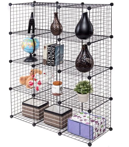 Rebrilliant 12 Cube Storage Shelf Rack DIY Wire Grid Bookcase Display Cabinet Organiser Black 145cm H X 110cm W X 37cm D