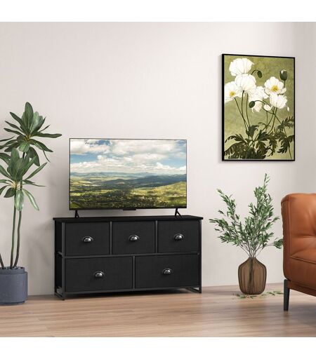 Rebrilliant 5 Drawers Cabinet 2-Tier Fabric Storage Organizer Chest Of Drawers W/ Baskets Black 54cm H X 100cm W X 30cm D