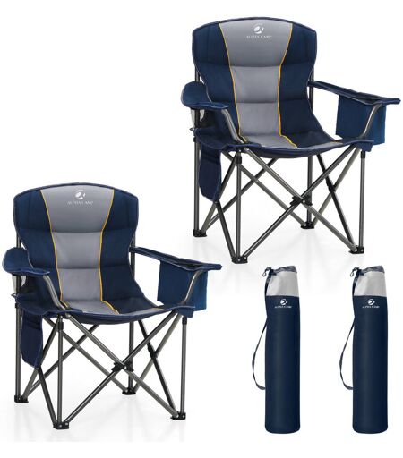 This folding camping chair allows you to relax anywhere. Ideal for camping, picnics, barbecues, outdoor concerts, backyards, or many other activities. This comfortable chair can be placed quickly, opens and folds in just a few seconds, and can be easily put back into the bag for storage or travel. It is really a good partner for an outside journey. Blue Elephant Colour: Blue/Grey, Number of Chairs Included: 2 ...