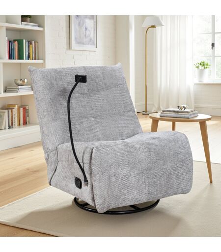 Blending casual style with functional comfort, this recliner chair features a laid-back silhouette inspired by bean bag chairs. It includes a manual side lever for easy reclining, and a base that swivels and rocks for added versatility. A built-in phone holder attachment keeps your device secure — ideal for reading, scrolling, or video calls. Photographed under bright studio lights, the item and its colour may appear slightly different in various environments due to lighting and screen settings. Please note that the actual dimensions of the item may vary slightly from those listed on the site. 17 Stories Upholstery Colour: Grey ...