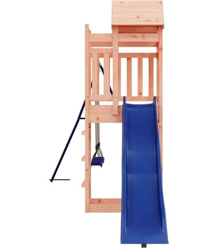 Do you want to give your children the freedom to play at home? This wooden outdoor playset transforms your backyard into a playground for imaginative adventures! Solid douglas wood: This garden climbing frame is made of solid douglas wood. Solid douglas wood is a highly durable wood that works well for outdoors. Douglas wood is also strong enough to work with minimum care, even under the influence of the weather. Sturdy and stable frame: The wooden frame of the playset ensures sturdiness and stability. In addition, the "A" shaped legs of the children's swing allow for balance. Multi-activity centres: The playground equipment features a 118 cm height platform and stands out with its wave slide, a single swing set as well as a sandpit. Your little ones can also invite their friends to join the fun. Thoughtful design: The surrounding wooden railings are designed to ensure the safety of children during their happy play. Also, the wooden roof provides shade for your children on hot summer days. Endless fun: This fun-filled wooden playset is the perfect way for your children and their friends to enjoy entertainment, have more interactive time and make memories for you and your children! Warning: Only for domestic use Outdoor use Not suitable for children under 3 years Recommend user age: 3-8 years old Note: The product shall be anchored in order to reduce tipping hazards. Anchors are included. Freeport Park Colour: Brown ...