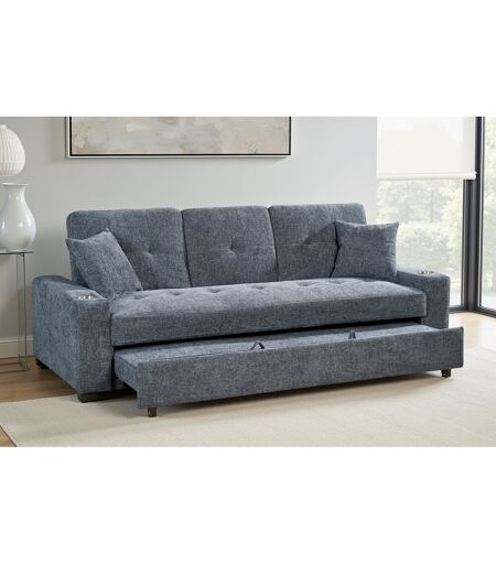 Latitude Run Upholstered Sofa Bed with Cupholders Blue Chenille 76cm H X 222cm W X 59cm D
