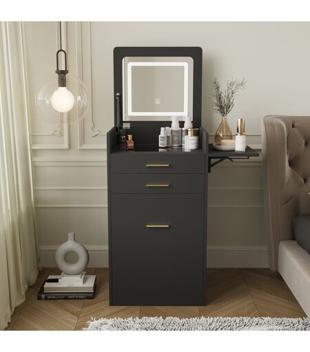 This dressing table is a great choice for small spaces. It is a chest of drawers when not in use, but when in use, just flip open the tabletop and pull out the chair to turn it into a beautiful dressing table. Let us plan a space-saving and modern home style for you. 17 Stories Colour: Black ...