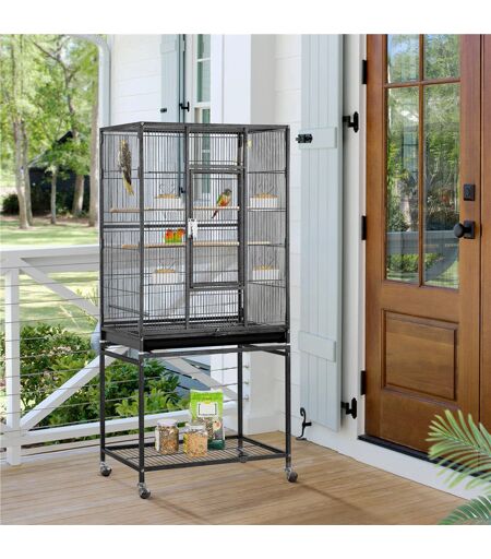 Yaheetech Wrought Iron Standing Large Parrot Parakeet Flight Bird Cage Black 136cm H X 62cm W X 43cm D