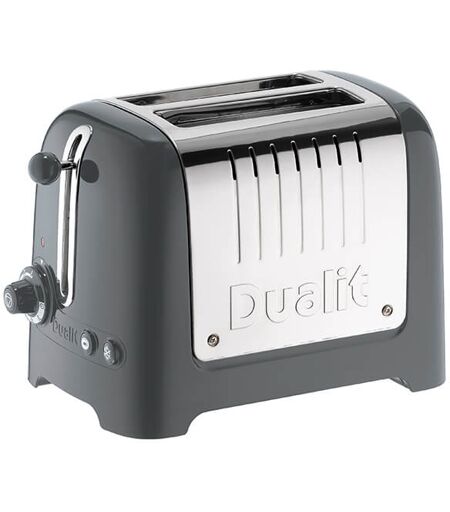 The Dualit Lite 2 Slot Toaster in Grey combines Dualit's classic styling with a contemporary high gloss finish. Patented Perfect Toast Technology - Calculates the temperature of your toaster and surroundings to derive the precise toasting time for your next slice of consistently golden brown toast. Patented Peek & Pop - Unique to Dualit, this feature allows you to check on your bread without stopping it toasting. Extra Wide Slots - 36mm slots accommodate thicker slices and terrific toasties with the Sandwich Cage. Bagel button for toasting buns/bagels (toasts one side and warms the other). Defrost button for toasting frozen bread. ...