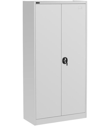 The locking metal cabinet STAR_MCAB_29 from Fromm & Starck, the experts for high-quality industrial equipment, brings order to your office or workshop. You can safety store important documents or indispensable materials inside. The office cabinet is an unobtrusive grey, so it will blend in to any environment. The steel office cabinet's solid construction and mechanical cylinder lock with two keys ensures security. This means that your important documents, work materials and valuables can always be kept securely locked away from unauthorised persons. The sturdy metal office cupboard is made of steel. This makes the storage cabinet also suitable for harsher environments such as an industrial warehouse or workshop without showing signs of wear. The supply cabinet has a maximum load capacity of 160 kg divided over four shelves—each of the height-adjustable shelves can bear a load up to 40 kg. The 90 cm-wide storage cabinet can be easily installed and assembled with screws according to the operating instructions. At 1.80 m tall and with its inserts, it offers ample storage space to enhance any office's or workshop's furnishings or office space. The feet are coated in plastic to protect the floor from scratches and other damage without forfeiting stability. ...