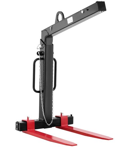 Safely move heavy loads weighing up to 2,000 kg with the pallet fork SBS-CF-2000 from Steinberg Systems. As an attachment for lifting equipment, it can be used wherever Euro pallets need to be picked up and moved professionally. It can also be used in construction and for industrial and agricultural goods. The crane fork can be quickly and easily connected to the lifting equipment. It is suited for installing on cranes with and without swivel arms as well as for cranes with an HDS grabber. The pallet fork for Euro pallets automatically adjusts to the load weight, ensuring that the pallet is aligned exactly parallel to the ground. The automatic weight compensation of 400 kg keeps it always balanced and thus enables stable transport. To ensure the safety of goods during transport, the height of the fork carriage is adjustable in a range of 1300 - 2000 mm. Euro pallets can be placed lengthwise as well as crosswise. With the help of the fork carriage and fork spring, the crane fork adapts to the load centre and thus ensures an even weight distribution on both forks. These can also be adjusted. The entire crane fork is made of resilient steel. The material longevity can be enhanced by weather-protected storage. It should also be cleaned regularly with suitable cleaning agents. ...