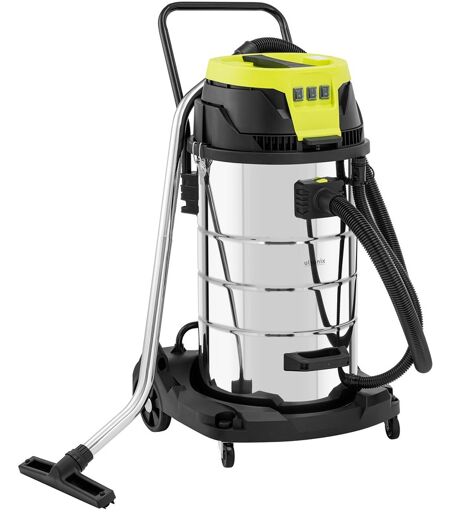 With the wet-dry vacuum cleaner from ulsonix, you can thoroughly and quickly remove even the most stubborn dirt from a wide variety of surfaces. In addition to dry floors, the industrial hoover also cleans damp surfaces, making it ideal for use in trade and industry or for effective cleaning of office and business premises. Thanks to its 3000 W and various attachments (floor nozzle, round brush and crevice nozzle), the wet vacuum cleaner is up to the toughest tasks. In addition, you can easily adapt it to different challenges via the three separately selectable power levels with 1000, 2000 and 3000 W. With a capacity of 100 l, the appliance easily completes several work cycles without you having to empty the container in between. The ergonomically shaped device is also flexible in handling: Equipped with four wheels, a carrying handle and the 5 m power cable, the wet vacuum cleaner offers a very convenient way of working. The 2 m long hose or the two-piece metal pipe also allows you to reliably clean hard-to-reach areas or remove liquids or mud. . Even after the actual cleaning, the wet and dry vacuum cleaner hardly does any work. The cotton filter in combination with a sponge filter reliably protects the unit. The high-quality workmanship guarantees a long service life. ...