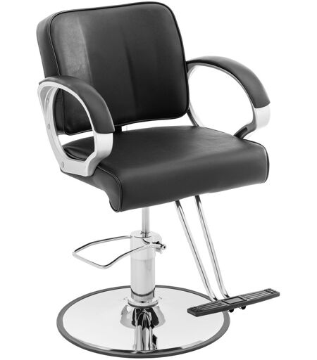 Complement your hairdressing supplies and beautify your salon with the PHYSA HOVE BLACK hairdressing chair from physa. Thanks to its black colour, it fits into any environment and sets the scene. The hairdresser's chair with elegant T-footrest will delight you and your clientele with maximum comfort - whether in the hairdressing salon, tattoo or beauty salon. Your clients will sit extremely comfortably on the ergonomic hairdresser's chair. This is ensured by the high-quality foam that serves as padding. It is soft and keeps its shape. The robust imitation leather cover is also very easy to clean and dust and water repellent. The hairdresser's chair is height adjustable between 500 - 600 mm. The hydraulic pump, which extends from the base, allows you to adjust the seat to your individual needs with ease. The frame of the barber chair is made of robust steel. This gives the 180 kg bearing chair a secure hold and high durability. For an optimal working position, the hairdressing chair can be rotated 360° and easily aligned. ...