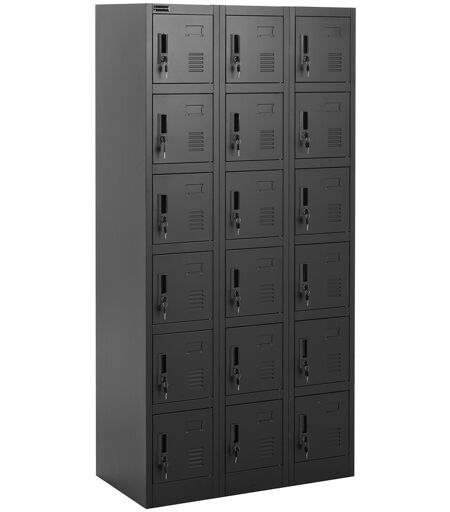 Whether you want to safely store your mobile phone, important files, your wallet or other personal valuables - the spacious metal locker from Fromm & Starck keeps everything behind 18 lockable doors. With its elegant combination of grey and anthracite, the locker enhances any interior or office furnishings. Thanks to its solid construction and the 18 separately lockable compartments, the metal lockable cabinet is an indispensable piece of furniture in every office, workshop and library. Two keys are included per locker. This way, you can reliably secure the contents of the compartments against unauthorised access. Practical: labels make it easier to clearly assign the individual compartments. In addition, slits ensure optimal air circulation. With the locker cabinet from Fromm & Starck's professional industrial supplies, you will get a stable and particularly durable product that can support up to 200 kg. The robust multi-purpose cabinet is made of cold-rolled sheet metal with an epoxy resin coating. With the help of the easy-to-understand instruction manual and the assembly materials supplied, you can assemble the metal cabinet quickly and easily so that it is ready for use within a short time. ...
