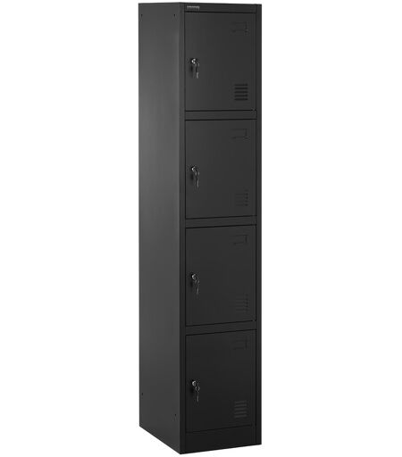 Whether you want to safely store your mobile phone, important files, your wallet or other personal valuables - the spacious metal locker from Fromm & Starck keeps everything behind 4 lockable doors. With its elegant combination of grey and anthracite, the locker enhances any interior and office furnishings. Thanks to its solid construction and the 4 separately lockable compartments, the metal lockable cabinet is an indispensable piece of furniture in every office, workshop and library. Two keys are included per locker. This way, you can reliably secure the contents of the compartments against unauthorised access. Practical: labels make it easier to clearly assign the individual compartments. In addition, slits ensure optimal air circulation. Each compartment also contains a coat hanger and a shelf. With the locker cabinet from Fromm & Starck's professional industrial supplies, you will get a stable and particularly durable product that can support up to 80 kg. The robust multi-purpose cabinet is made of steel (0.6 mm) with an epoxy resin coating. With the help of the easy-to-understand instruction manual and the assembly materials supplied, you can assemble the metal cabinet quickly and easily so that it is ready for use within a short time. ...